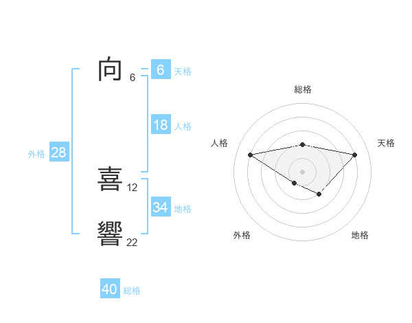 向 喜響さんの総格は40画の2点!