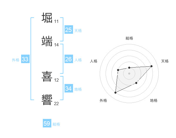 堀端 喜響さんを姓名の画数から五運を鑑定
