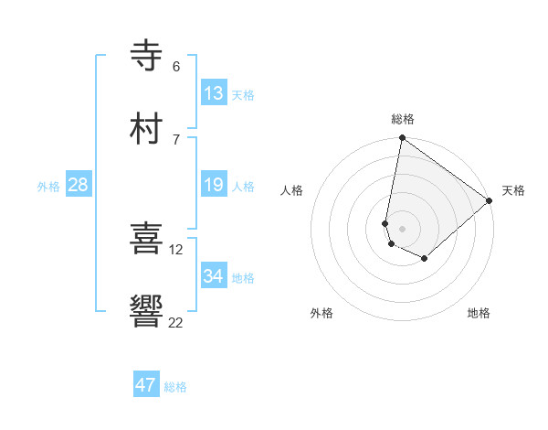 寺村 喜響さんを姓名の画数から五運を鑑定