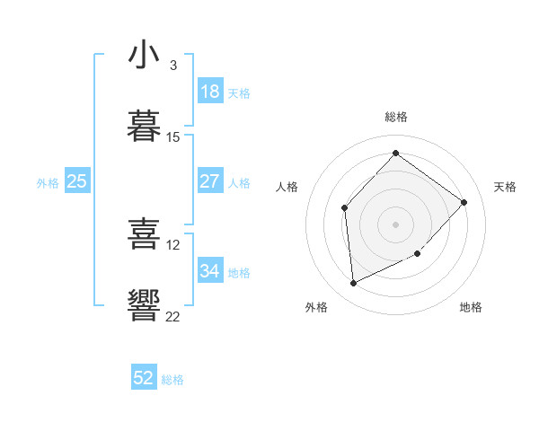 小暮 喜響さんの総格は52画の4点!