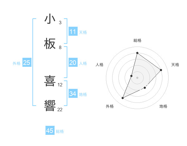 小板 喜響さんの総格は45画の4点!