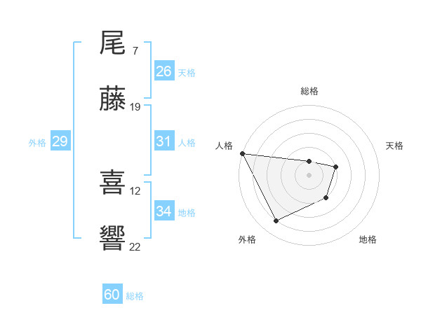 尾藤 喜響さんの総格は60画の1点!