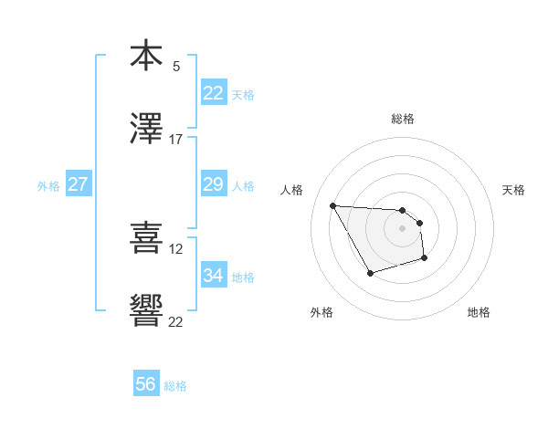 本澤 喜響さんの天格は22画の1点!