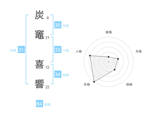 炭竈 喜響さんの総格は64画の1点!
