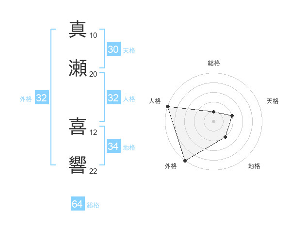 真瀬 喜響さんを姓名の画数から五運を鑑定
