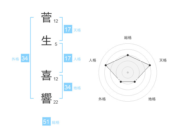 菅生 喜響さんの総格は51画の3点!