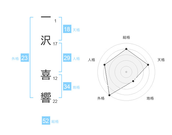 一沢 喜響さんを姓名の画数から五運を鑑定