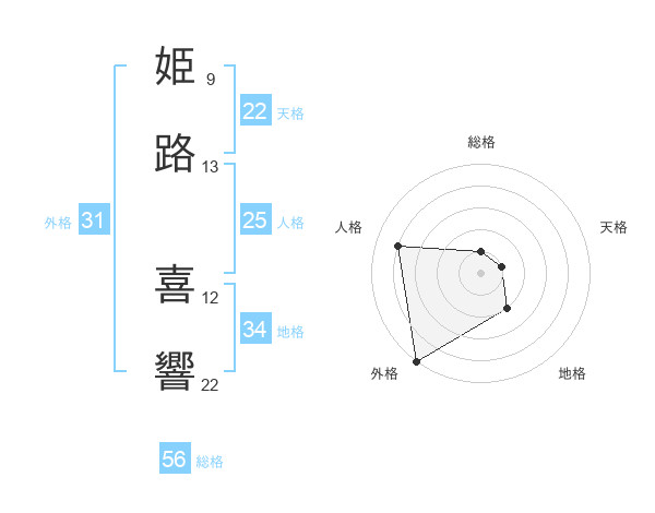 姫路 喜響さんの総格は56画の1点!