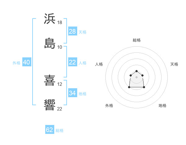 浜島 喜響さんの天格は28画の1点