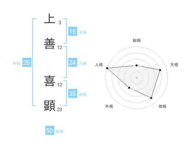 上善 喜顕さんの総格は50画の2点!