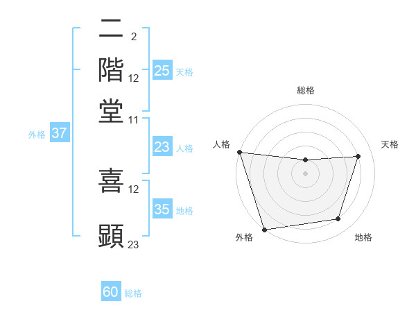 二階堂 喜顕さんを姓名の画数から五運を鑑定