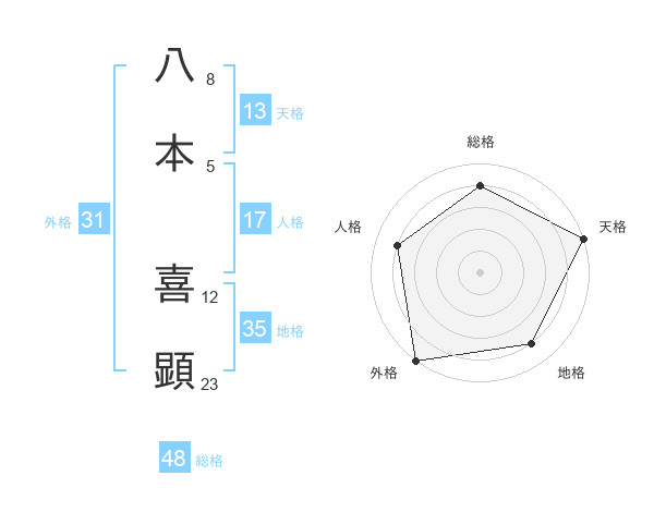八本 喜顕さんを姓名の画数から五運を鑑定