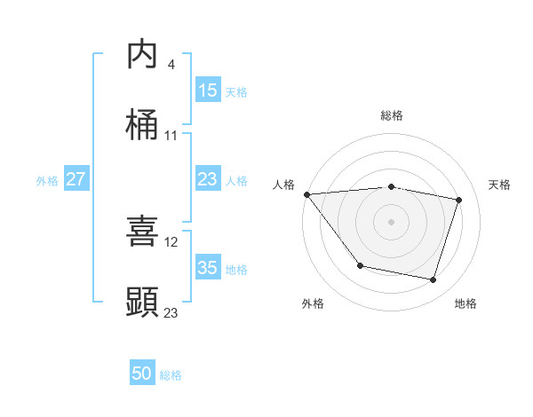 内桶 喜顕さんを姓名の画数から五運を鑑定