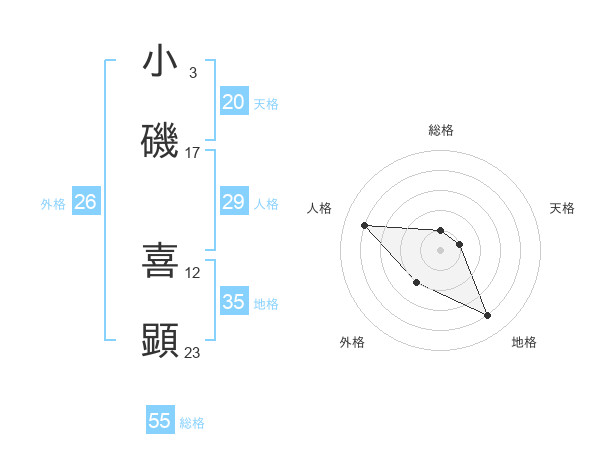 小磯 喜顕さんの総格は55画の1点!