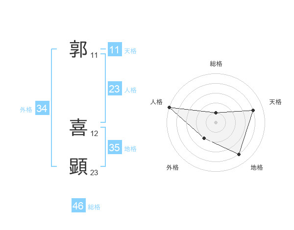 郭 喜顕さんを姓名の画数から五運を鑑定