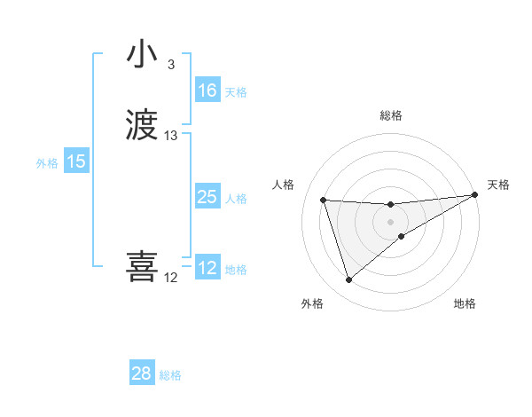 小渡 喜さんの外格は15画の4点!