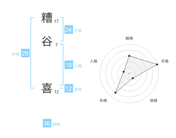 糟谷 喜さんを姓名の画数から五運を鑑定