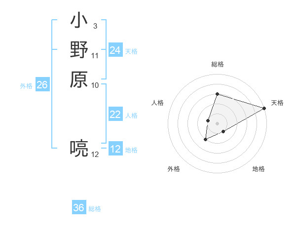 小野原 喨さんの天格は24画の5点!