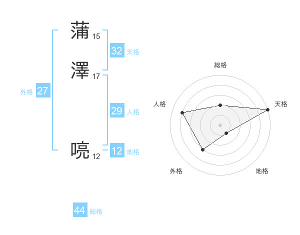 蒲澤 喨さんを姓名の画数から五運を鑑定