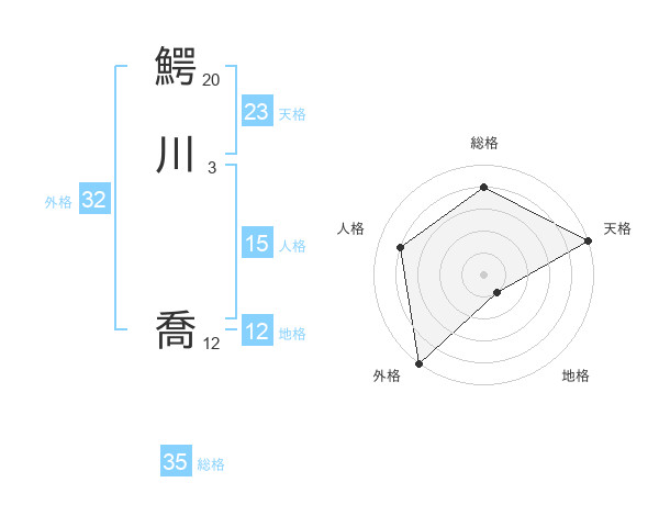 鰐川 喬さんの天格は23画の5点!