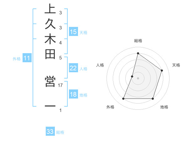 上久木田 営一さんの総格は33画の4点!