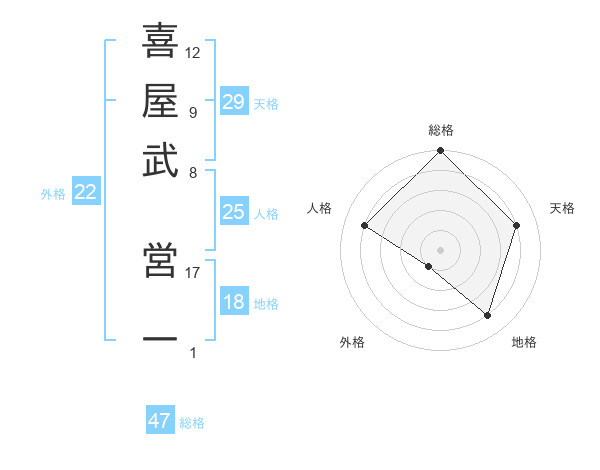 喜屋武 営一さんの総格は47画の5点!