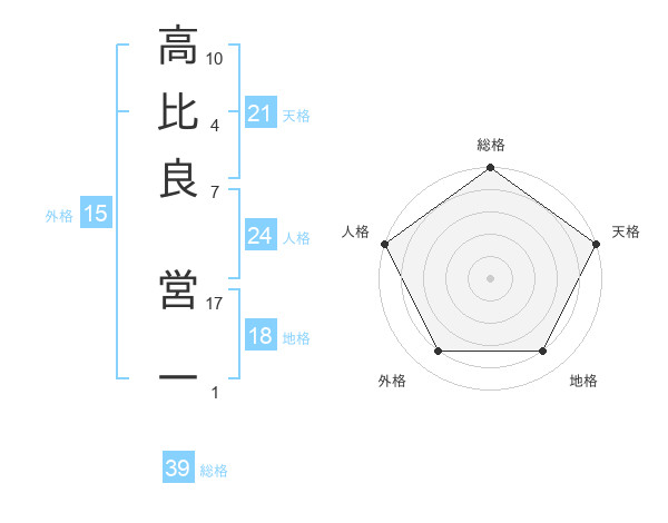 高比良 営一さんの天格は21画の5点!