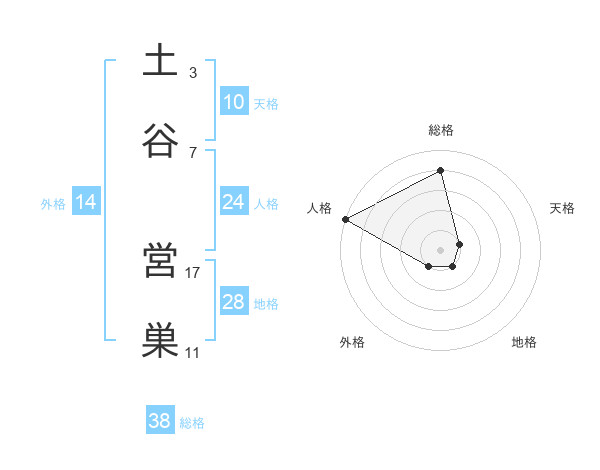 土谷 営巣さんの総格は38画の4点!