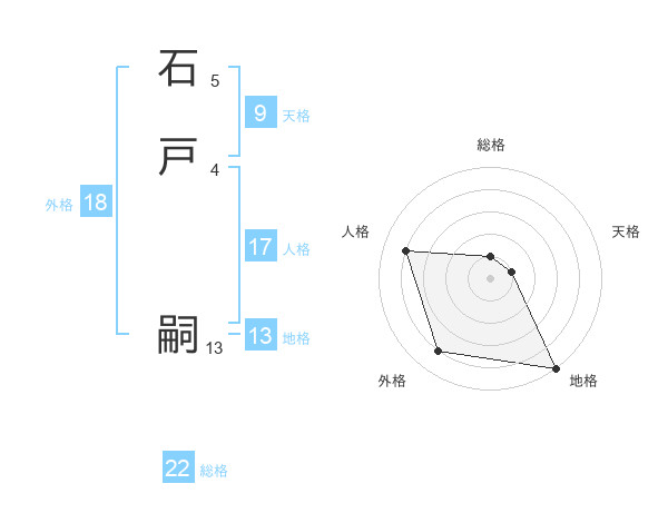 石戸 嗣さんの総格は22画の1点!