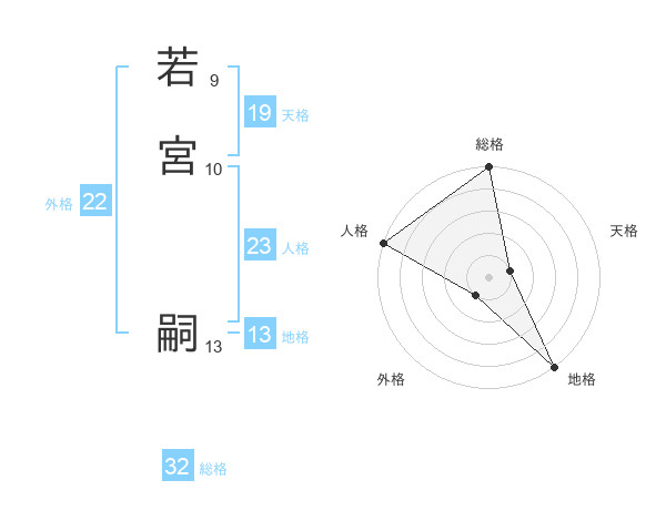 若宮 嗣さんの総格は32画の5点!