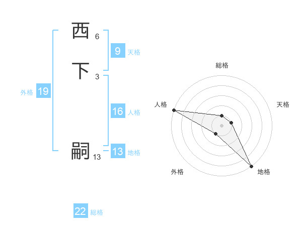 西下 嗣さんの地格は13画の5点!