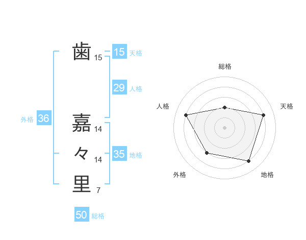 歯 嘉々里さんを姓名の画数から五運を鑑定