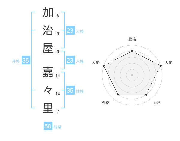 加治屋 嘉々里さんの天格は23画の5点