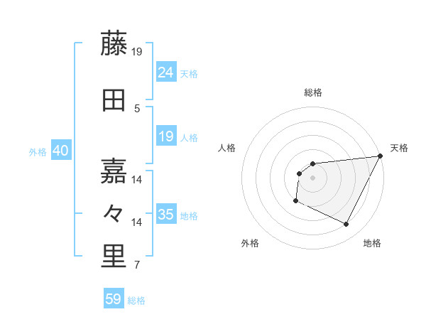 藤田 嘉々里さんの天格は24画の5点!