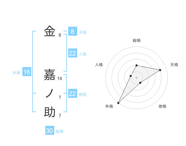 金 嘉ノ助さんを姓名の画数から五運を鑑定