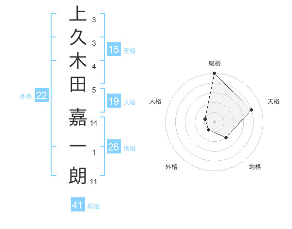 上久木田 嘉一朗さんを姓名の画数から五運を鑑定