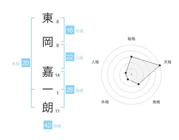 東岡 嘉一朗さんの総格は42画の3点!