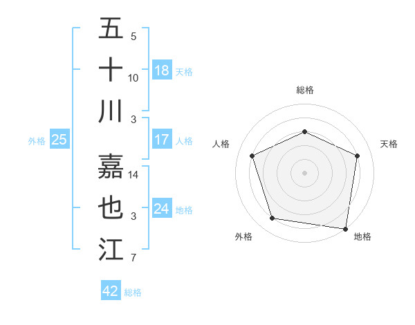 五十川 嘉也江さんの人格は17画の4点!
