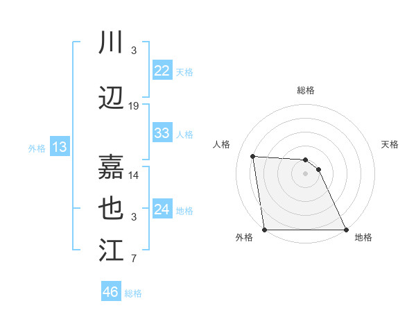 川辺 嘉也江さんを姓名の画数から五運を鑑定