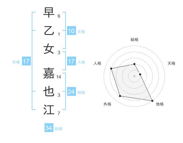 早乙女 嘉也江さんを姓名の画数から五運を鑑定