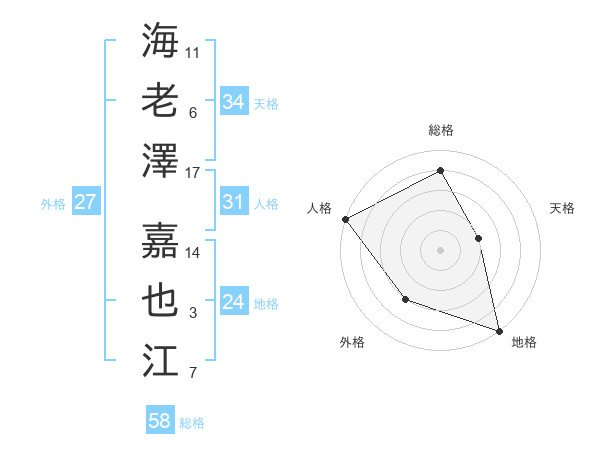 海老澤 嘉也江さんの総格は58画の4点!