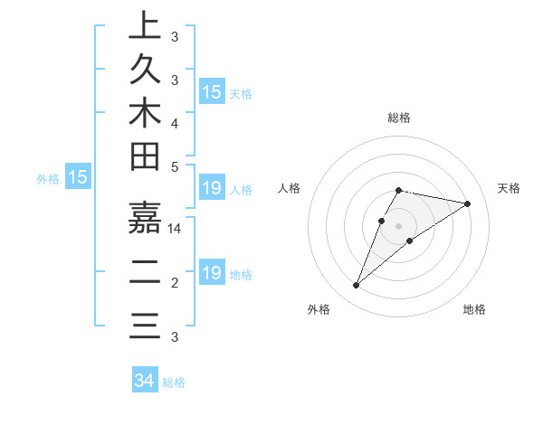 上久木田 嘉二三さんを姓名の画数から五運を鑑定