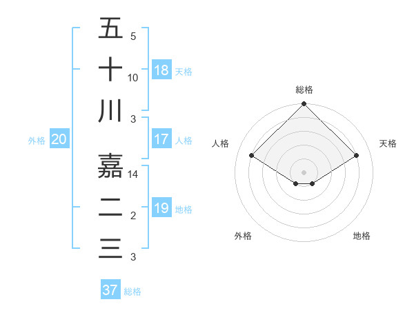五十川 嘉二三さんを姓名の画数から五運を鑑定
