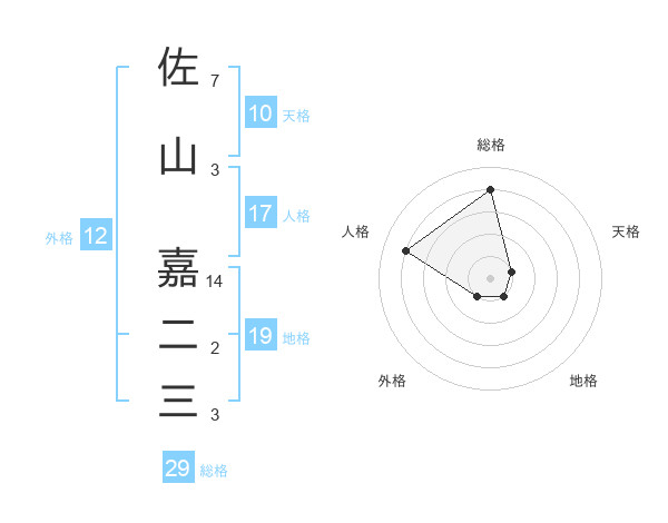佐山 嘉二三さんを姓名の画数から五運を鑑定