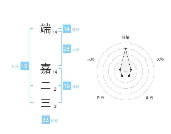 端 嘉二三さんを姓名の画数から五運を鑑定