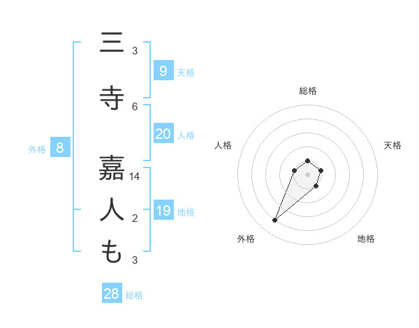 三寺 嘉人もさんの外格は8画の4点!
