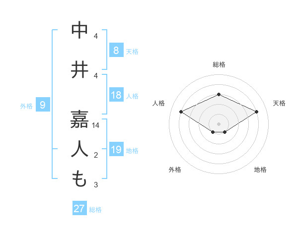 中井 嘉人もさんの総格は27画の3点