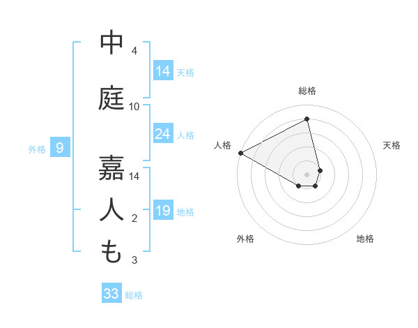 中庭 嘉人もさんの総格は33画の4点!