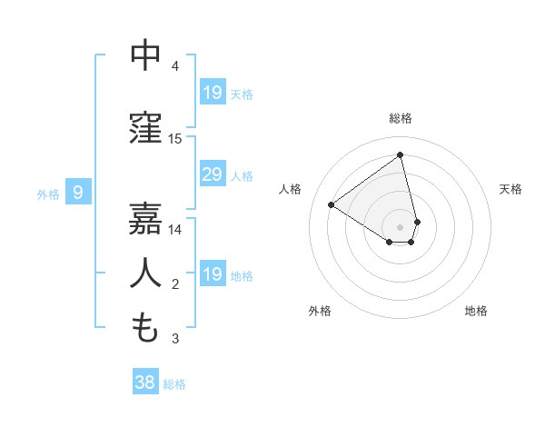 中窪 嘉人もさんの総格は38画の4点!