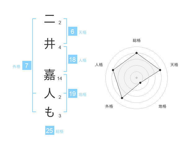二井 嘉人もさんの総格は25画の4点!